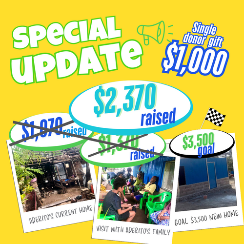 That brings us to $2,370 raised, which means we’re now 68% of the way to our goal of $3,500 to build a safe home for Aderito’s family!
